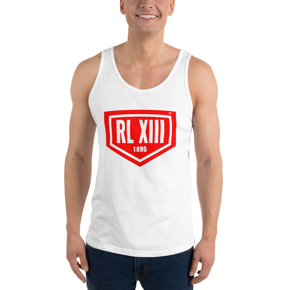The Red RL XIII Logo Men’s Classic White Tank Top delivers a clean, athletic look inspired by rugby league culture.