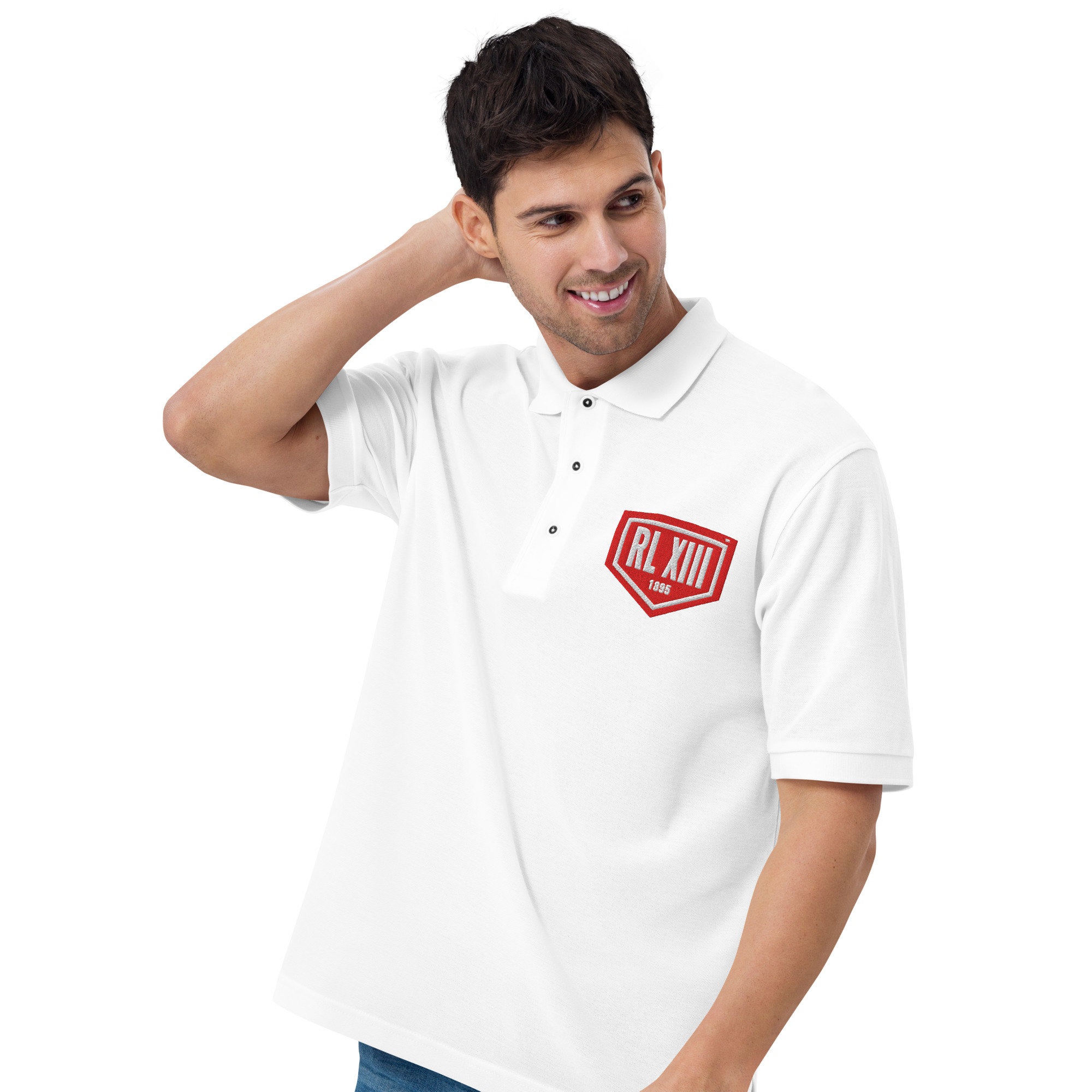 RL XIII Premium K500 White Polo Shirt with Red Logo